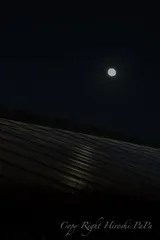 出現 EXPO2025大阪万博、運良く大屋根リング上で見た幻想的な月の出画像の中にパヴィリオンを入れたかったが人が多く身動き取れず。但しサーチライトがいい具合に入って、大屋根リング上の人物が浮かび上がった。大屋根リングの向こうの赤白の物体はコンテナ作業用のガントリークレーン月の下のギザギザに隠れている部分