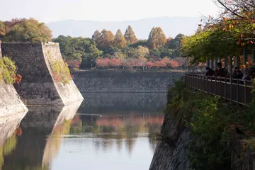 大阪城公園 堀に映る紅葉 周りを囲む石垣 春とは違った風景を見せる大阪城公園です。