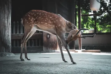 南大門の鹿 鹿が毛繕いをしているところを撮りました。