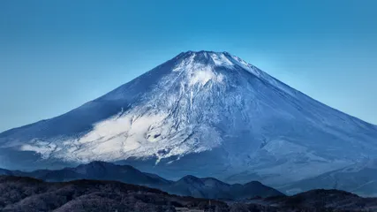 富士山コレクション:2025年1月1日 茅ヶ崎から撮影した過去の富士山の作品を投稿させていただきます。2025年1月1日に撮影しました。富士山頂との距離は、約60kmあり、天気が良くても新幹線の車窓から見る山肌ほどクリアではありません。山頂に雪が積もり始めています。^^