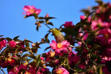 冬色チャレンジ」山茶花とメジロ