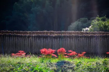 長閑な風景 9/26、伊勢原市日向薬師の彼岸花を求めていってきました。田んぼの畔のそこここに彼岸花が咲き、刈り取られた稲がはさがけされている様子は、本当に長閑な風景でした。 当日は天気が良く、日当たり抜群のため、汗ばむ陽気でした。日向の彼岸花の咲き具合は、まさに見ごろという感じでした。でも、一部枯れ始