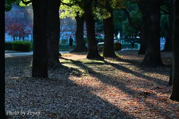 【秋色チャレンジ】朝練 早朝の公園に行ってみました。ちょっと肌寒かったのですが、天気も良く穏やかな感じの朝でした。ちょうど昇り始めた朝日が、樹々の長い影を作っていて、印象的でした。でも、この肌寒いのにも関わらず、練習に励む人が多いのに驚きました。
