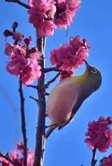 NEW 梅にメジロさん 紅梅にメジロさん。忙しそうに花から花へ楽しんでいる様でした。^^