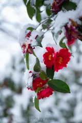 雪持ち椿 普段見る風景も季節や気象条件によってはまるで感じが変わりますよね。ちなみにタイトルの「雪持ち椿」とは伝統的な吉祥文様のことで、雪国に春の訪れを告げる椿の力強い生命力を表し、古くから着物や帯、和菓子に初春の風情を伝える意匠として使われているものだそうです。そういう古のころから人々が感じ取っていた雪の中