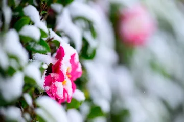 寒椿 雪が降る中、キレイな花を見つけるのに少し苦労しました(^^)/