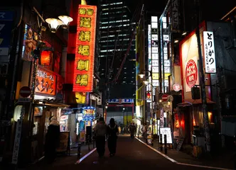 夜の盛り場。 渋谷百軒店の風景。