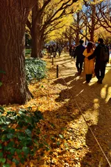神宮外苑の銀杏です。ピークをやや過ぎていましたが、それでも圧巻の美しさでした。^^