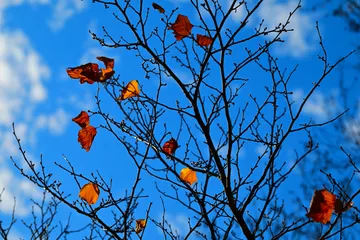 「秋色チャレンジ」愁 一生懸命にしがみついている葉っぱを秋の澄んだ空をバックに写してみました。「愁」という字を見返してみたら「秋の心」なんですね。なるほど🧐