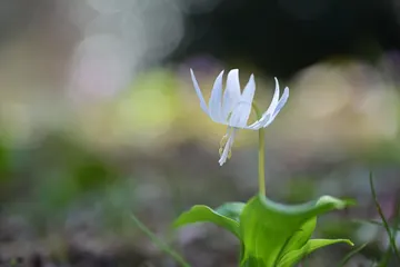 白花カタクリ 紫の日本カタクリ、黄色いキバナカタクリその中にぽつんと咲く白い花は変異色なのでしょうか。とても美しく魅せられます。