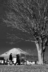 お散歩写真です。茅ヶ崎小出川沿いから撮影しました。モノクロ化して富士山の姿を際立たせました。^^昨日投稿した作品と同じショットですが、仕上げを変えて更に富士山を強調しました。^^