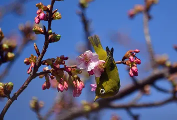 NEW 河津桜にメジロさん