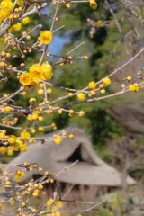 蝋梅 お寺に咲く蝋梅が見頃になりました。寄って花を一輪一輪撮るのもいいですが、豪快に全体を写すのもいいですね。
