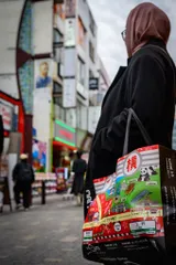 アメ横の今 久しぶりにアメ横を散策。アメ横と言えば、アメリカっぽい物、良い声の海産物屋さんやお菓子屋さんでした。しかし今やオープンなアジアンフードのお店が立ち並び、外国人観光客がいっぱい!年末の買い出しも変わるのでしょうか?そんなアメ横でお買い物して帰るヒジャブ🧕姿の女性に声をかけて撮らせて貰いました。インドネ