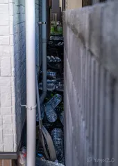猫除け? ぶらぶら街撮りをしていたら、こんなものに遭遇しました。全部水が入っているようです。もしかして猫除け? 📸 Z8 + Z 35mm f/1.8 S