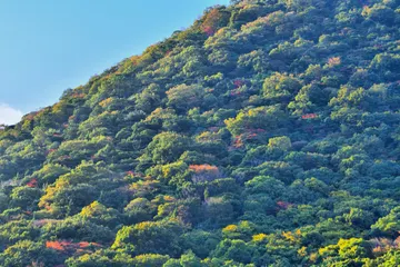 11月10日に撮影した讃岐富士の山肌です。良く見ると杉の木も沢山あるようですが、所々の広葉樹が紅葉し存在感を示している様です。控え目な秋の紅葉です。