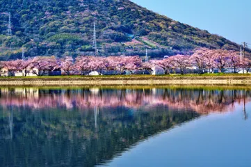 貯水池の春 先日、香川県に帰省した時に撮影しました。坂出市の鎌田池傍にある貯水池の風景です。背景は讃岐富士です^^