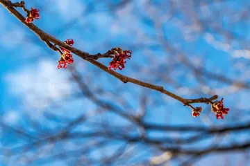 ゆっくり歩いていてもう赤花マンサクが咲き始めているのを見つけた。
