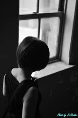 気になる彼女 レトロな街並みがあると言うので訪れたとあるビル廃墟かと思いきや、いまどきなカフェや雑貨屋、会社が入居する現役のビル階段やドア、ガラス等が醸し出す雰囲気はレトロそんな建物で彼女を撮ってみたタイトルは、彼女を気にしてるのか?彼女が気にしてるのか?見る方の想像にお任せするものにしましたさて、良かったら物語