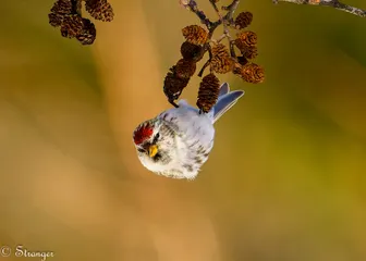 ベニヒワ ベニヒワのメスがぶら下がっている。