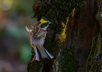 ミヤマホウジロ 水浴びあと、羽を乾かしてます。