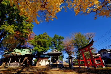 秋色チャレンジ」小さな神社の秋 12月7日に撮影しました。茅ヶ崎市の三島神社です。小さな神社で赤い鳥居をくぐると直ぐに本殿があります。^^