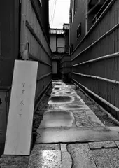 雨上がり・・・ お写んぽの途中細い路地に出会う。 なんやろう? 食堂への導線でした。 京都あるあるです。 絶対に美味しい店です。 味に自信がないと 奥に店舗を構える意味がありません。 今度入ってみます。 楽しみ