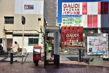 電話ボックスのある光景 普段生活には、あまり関わりの無くなった電話ボックス。ある事さえ見落としていたような気がします。茅ヶ崎駅前の公衆電話ボックスと郵便ポスト、黄緑と赤のコントラストが綺麗でした。