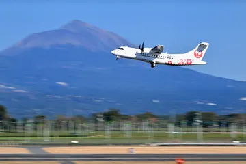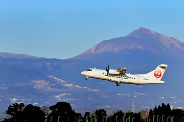 霧島連山をバックに飛行 霧島連山(高千穂峰)をバックに飛行する飛行機(鹿児島空港にて) Nikon Z9 NIKKOR100-400mm f/4.5-5.6 VR S1/400秒 f/4.8 ISO200