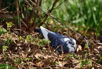 綺麗なブチさん 以前から茅ヶ崎の鶴嶺神社にブチの鳩を見かけていましたが、鶴嶺神社に近い小出川を散歩中にこの鳩が地面をつついてお食事中だったので撮影しました。近づいてもあまり逃げないのは、やはり神社で人は無害と知っているせいだと思います。^^撮っただけで作品性はありません。(;^_^A