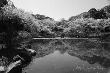 モノクロームなソメイヨシノ🌸 今年のソメイヨシノ🌸は、モノクロームをメインで撮影しました。昨日(4/3)、花見客で賑わう、もといカオスな状態だった大阪の鶴見緑地公園で撮影しました。ドドメ色に淀んだ池も、モノクロームの世界では、水面の反射がむしろ美しく、カオスな花見客たちさえも、色がなくなるだけで面白い味付けになったように思います