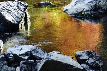 【秋色チャレンジ】【リフレクション】 【秋色チャレンジ】②渓谷(摂津峡)の淵に紅葉を透過した光が煌めく。
