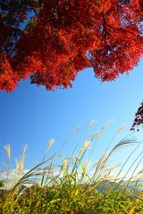 秋景 イロハ紅葉まだまだ青いものやだいぶ枯れているものなど同じ公園内でも日の当たる場所で違っていました。この1枚は数少ない赤い紅葉とススキちょっと間が空いてしまいましたが秋景らしいなと思って撮りました。Zf 26mm CPLフィルター