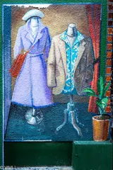 変哲の無い街のパーツ達。 こちらも街角の壁面です。壁に縫い付けられた永遠のショーウインドウです。流行に左右されないファッションです。