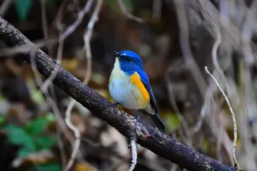 NEW 幸せの青い鳥 目の先数メートルにルリビタキが!朝陽もまだ当たらず薄暗い日陰です、一脚は背中のリュックに括り付けてあり取り出しセッティングする暇はありません。機材はZ50ⅡにZ100-400f4.5-5.6SVR+1.4テレコン、合算820mmの超望遠ISOはノイズを考えるとぎりぎりの6400、絞りは開放、シャッタ