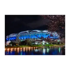 「世界自閉症啓発デー」、「発達障害啓発週間」 🌏2026💙 ブルーにライトアップ 桜が手前にあり少しだけ咲いていました。三脚を1番高くしてようやくこれくらいになりました。