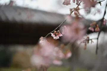 寒桜 立春を過ぎあたたかく春を感じた翌日は冷たい雪の一日にふとみると綺麗なさくらが咲いていました明日も降るのかな?