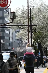 靖国神社から市ヶ谷方面へ向かう通りで撮ったものです。この通りの両側に咲く桜を見ながら歩いていると、前方にこの親子が、歩いていました。微笑ましい光景に思われて撮ったものです。父親にとっては、きれいな桜を愛でながら、我が子を肩車してのんびり歩くこの時間は、何物にも代えがたい、ずっと続いてほしい、そんな時