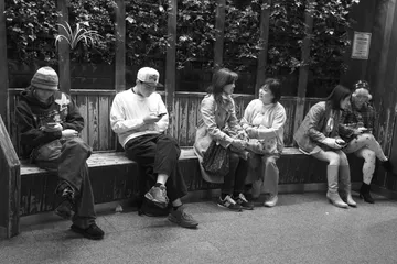 憩いの長椅子 ショッピングモールにある長椅子のところにそれぞれのStory を感じました。スマホを使っていない二人が新鮮です。