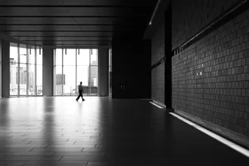 静かな音 静寂の中警備員が歩く足音が静かに響く。
