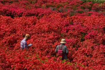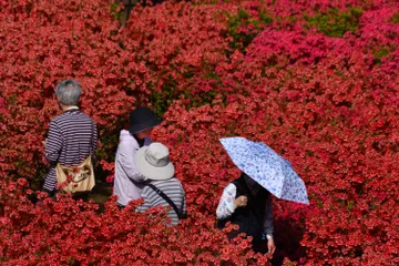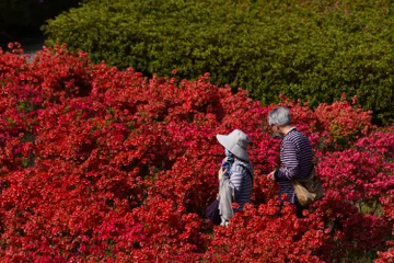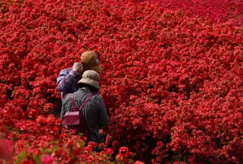 NEW 赤を楽しむ 既に投稿した作品と同じ日に撮影したものです。あつぎつつじの丘公園のキリシマツツジが満開です。沢山の方がツツジの花壇で思い思いに写真を撮っていました。