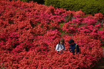 あつぎつつじの丘公園で撮影しました。キリシマツツジが満開です。沢山の方がツツジの花壇で思い思いに写真を撮っていました。