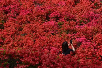 思い出作り あつぎつつじの丘公園で撮影しました。キリシマツツジが満開です。沢山の方がツツジの花壇で思い思いに写真を撮っていました。