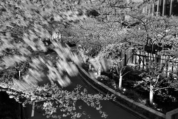2026,4,2 六本木、東京ミッドタウンの桜公園 夕暮れ近くになると、さっと風が通り抜けていった。一枝、二枝だけが揺れているところをスローシャッターで撮影