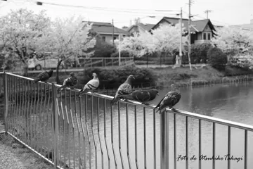 天王寺・阿倍野の商業エリアから南東へ下ったところに桃ヶ池があります。桜を撮っていて、ふと振り返りますと...「何、このヒト?」「何だぁ、お前?!」「うん?何かあった?」・・・ハトさんのお花見を邪魔してしまったようです。^^