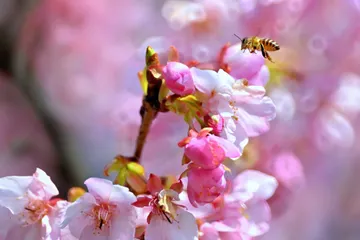 河津桜とミツバチ