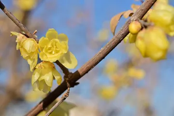 会報誌の表紙を見てこれはひょっとして、と説明を読んだらやはりロウバイでした。今年の一月の半ばを過ぎたころ、長居植物園で椿や山茶花を撮ったあと園内を散策していると、園芸ボランティアのみなさんがすぐ近くの植え込み前に集まってきました。何事かと思って尋ねますと、ロウバイが開花したので作業の合間に見に来られ