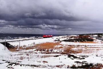 NEW 冬色チャレンジ 国鉄時代の下北半島は酷寒地だった 下北半島を走る国鉄大湊線です。赤いディーゼルカーの3輌編成です。車両は3輌とも北海道などの酷寒地向け耐寒仕様のキハ22型です。国鉄時代の下北半島は北海道と同じ酷寒地でした。