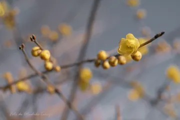 陽だまりのろーばい(大阪城公園・梅林) 日中の晴天下では、蝋梅の花の黄色の輝度が強すぎると思いましたので、夕方に訪れることにしました(1/10撮影)。日没前の夕陽でも、コントラストや彩度の強いこと強いこと。^^;撮影時は、ピクコン:スタンダードですが、NX Studioでオリジナルの"Cloudy January"を適用後、いろいろと調整