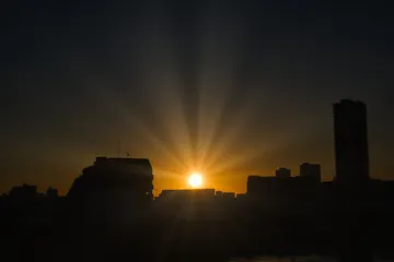 朝、会社に出勤したらちょうど日が昇る途中だったので撮りました。太陽が主役なのでだいぶ暗めに処理してます。
